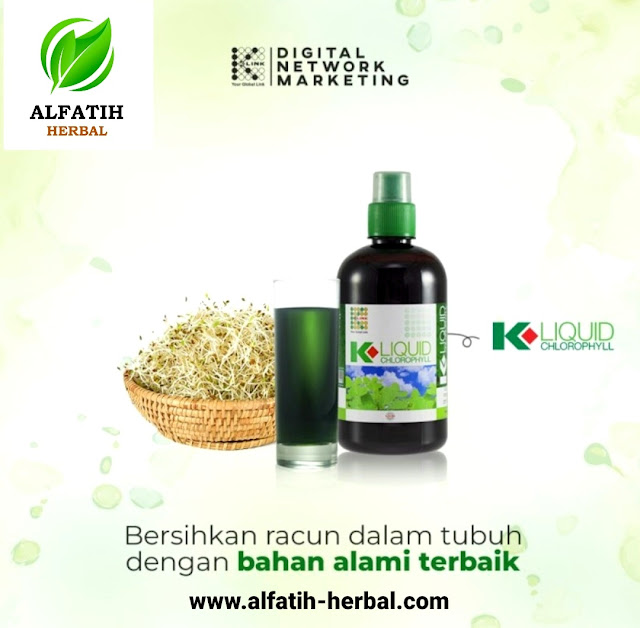 K-Liquid Chlorophyll adalah minuman kesehatan (Herbal Drink) yang bahan utamanya adalah sari klorofil dari daun Alfalfa (Medicago sativa), suatu herbal bernilai nutrisi tinggi.