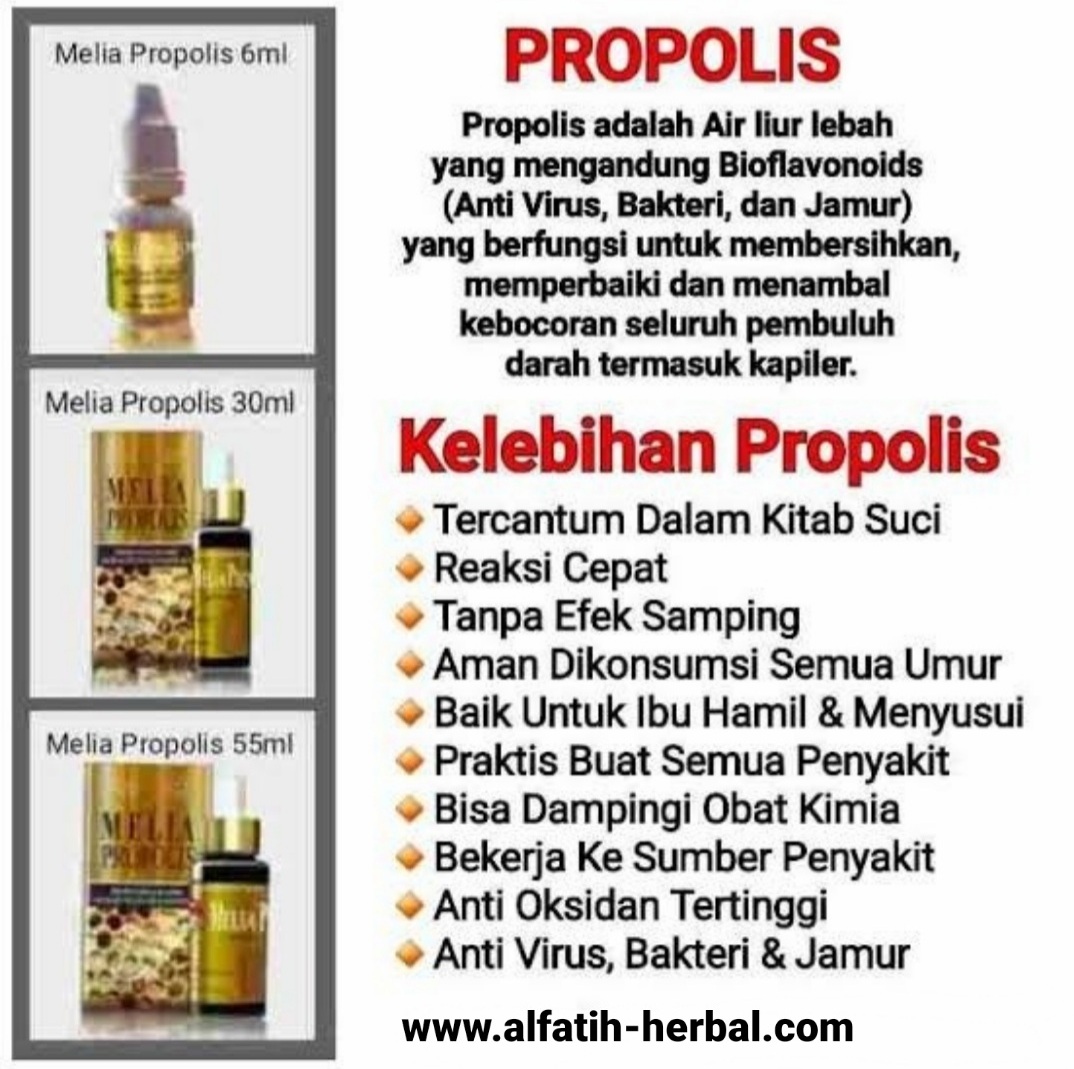➡️ Manfaat Melia Propolis sudah sangat dirasakan oleh jutaan masyarakat di Indonesia. Sudah banyak penyakit berat yang telah terbukti sembuh dengan konsumsi Melia Propolis tanpa efek samping. Dan bukan hanya itu, propolis pun dapat diminum untuk menjaga kesehatan dan mencegah serangan berbagai macam penyakit.
